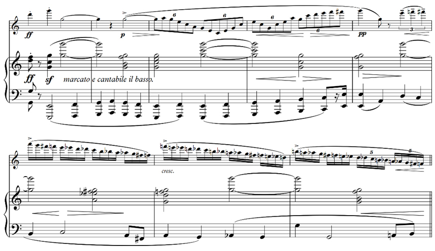 4楽章の最後のところも結構難しい。ドレ♭ミファソファ♭ミレドって、何のことはない普通のドレ♭ミファソファ♭ミレドなんだけど。 あとはピアノとのアンサンブルっていうのは、少し気をつけなきゃならないようなことって多かった?