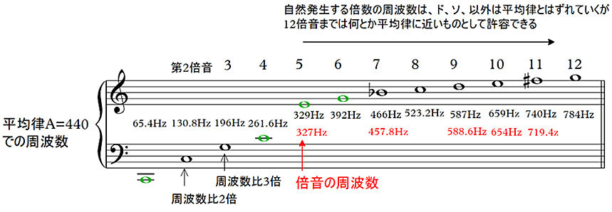 一つの音程の音が鳴ればその音波の周波数の整数倍の周波数が自然に発生する。