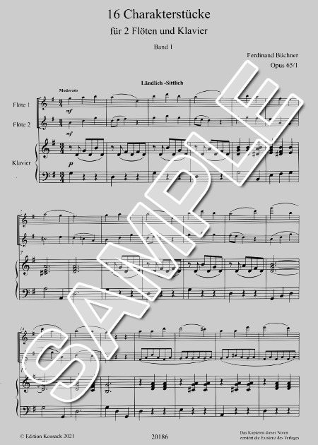 この小品集は、初版から2分冊で出版されている初心者用の学習用二重奏教材です。易しい伴奏付きで、その各曲に特徴的な標題が添えられ、音楽表現の学習に最適な曲集です。第1巻は、1. 田園風景の牧歌「Ländlich-Sittlich [G] (田舎風の)」、2. 喜怒哀楽を歌にした「Klage [e] (嘆き)」、3. 行進曲とギャロップで跳ね回る「Kinderspiele [G] (子供の遊び)」、4. 音階と分散和音主題で古典を模した「Alte Zeit [C] (古い時代)」、5. メヌエット風舞曲の「Etwas Kleines [F] (何か小さい)」、6. 風変りな主題動機で始まる「Hagestolz [D] (変わり者)」、7.ワルツの原型ともいわれる「Ländler [G] (レントラー)」、8. 楽しく踊るワルツ「Lustige Gesellschaft [F] (楽しい仲間)」の全8曲です。F.ビュッフナーは19世紀後半に活躍したドイツ生まれの旧システムを使うフルーティスト、作曲家です。1850年にロシアのサンクトペテルブルクに赴き、そこで音楽活動を始め、1856年にモスクワのボリショイ歌劇場の首席フルーティストに任命されました。更にN.ルビンシテインが開設したモスクワ音楽院の教授として活躍し、協奏曲をはじめ多くのフルート室内楽作品を書き残し、同地で生涯を閉じました。 (解説/佐野悦郎)ニュース