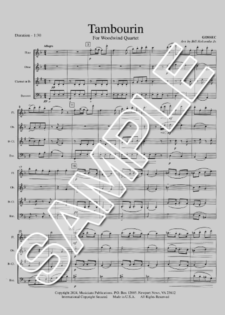 楽譜検索TAMBOURIN (ARR.HOLCOMBE JR.), SCORE & PARTS