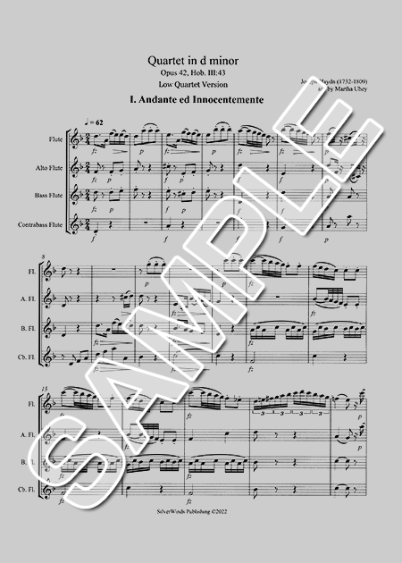 楽譜検索QUARTET IN D-MOLL OP.42 HOB.III:43 (ARR.UHEY), SCORE & PARTS